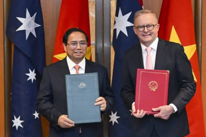 Vietnamese Prime Minister Pham Minh Chinh’s official state visit to the island continent came after he attended in the southeastern city of Melbourne the Association of Southeast Asian Nations (Asean)-Australian Special Summit this week, co-led by his Australian counterpart Anthony Albanese and Laotian premier Sonexay Siphandone.