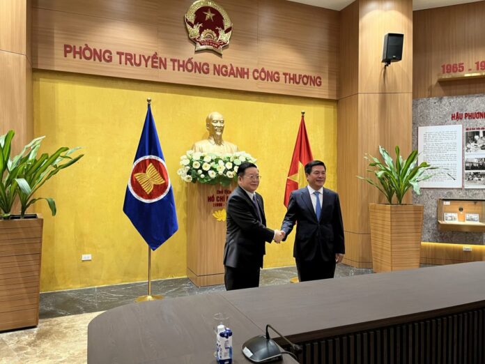Secretary-General of ASEAN Dr. Kao Kim Hourn kicked off his official visit to Viet Nam today by meeting with Minister of Industry and Trade of Viet Nam Nguyen Hong Dien. They discussed the progress of ASEAN’s economic cooperation, as well as Viet Nam’s contributions to regional trade, strengthening supply chain resilience, and the implementation of the Regional Comprehensive Economic Partnership (RCEP).