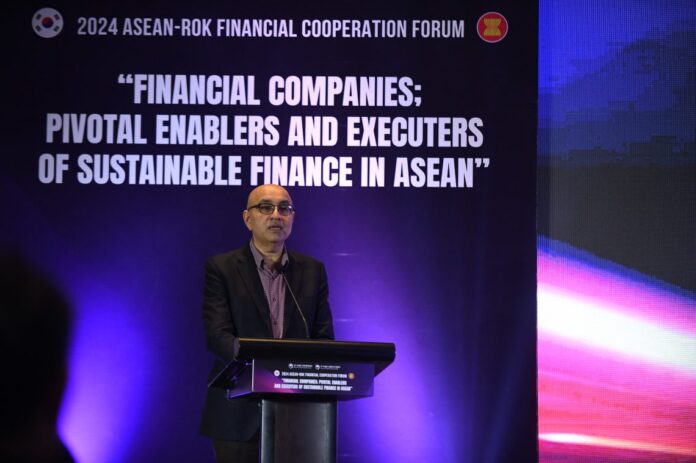 Deputy Secretary-General of ASEAN for Economic Community, Satvinder Singh, delivered congratulatory remarks at the 2024 ASEAN-ROK Financial Cooperation Forum on 4 July 2024 in Jakarta, Indonesia. In his remarks, DSG Satvinder Singh highlighted ASEAN’s concrete efforts towards sustainable finance and welcomed stronger cooperation between ASEAN and the Republic of Korea towards achieving net zero.