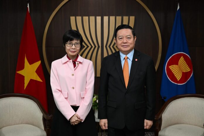 Secretary-General of ASEAN, Dr. Kao Kim Hourn, today received the Permanent Representative of Viet Nam to ASEAN, H.E. Ambassador Dr. Ton Thi Ngoc Huong, at the ASEAN Headquarters/ASEAN Secretariat. Their discussion underscored Viet Nam’s steadfast commitment to ASEAN’s shared goals, explored key regional priorities, and reaffirmed shared efforts in advancing ASEAN Community-building process. SG Dr. Kao congratulated Viet Nam for organising 2nd ASEAN Future Forum to be held in Ha Noi, Viet Nam, which he will attend.