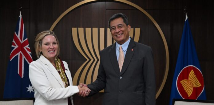 Deputy Secretary-General of ASEAN for Community and Corporate Affairs, H.E. Nararya Sanggramawijaya Soeprapto, receives Ambassador of Australia, H.E. Tiffany McDonald, at the ASEAN Headquarters / ASEAN Secretariat today. They exchanged latest update on Australia’s support through the Aus4ASEAN Futures as well as support for ASEAN economic priorities.