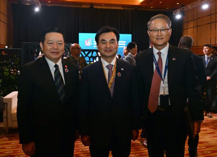 Secretary-General of ASEAN, Dr. Kao Kim Hourn, today held a pull-aside meeting with the Minister of National Defence of the Republic of Korea, H.E. Ahn Gyu-Back, on the sidelines of the 12th ASEAN Defence Ministers’ Meeting (ADMM)-Plus, in Kuala Lumpur, Malaysia. Dr. Kao congratulated Minister Gyu-Back on his appointment and looked forward to working together with the Republic of Korea in strengthening regional defence cooperation.