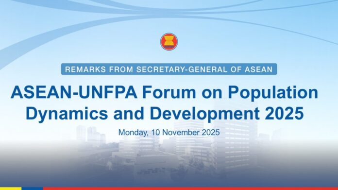 Secretary-General of ASEAN, Dr. Kao Kim Hourn, delivered opening remarks via video message at the Inaugural ASEAN-UNFPA Forum on Population Dynamics and Development 2025, held in Kuala Lumpur, Malaysia, on 10–11 November 2025. The Forum, organised by the UNFPA Asia-Pacific Regional Office with support from the ASEAN Secretariat, was conceived as a collaborative platform for ASEAN Member States to share lessons, anticipate policy needs, and strengthen regional cooperation on population dynamics and their implications for sustainable development. In his remarks, SG Dr. Kao urged for strategic shifts, and emphasised prioritising and integrating demographic planning across all pillars. The discussions focused on key thematic areas including fertility and family dynamics, ageing, health and social support systems, migration and mobility, youth, workforce, and intergenerational solidarity. The Forum underscores ASEAN’s commitment to fostering evidence-based, inclusive, and forward-looking research and policies that enable the region to adapt to demographic shifts, aligning with the Sustainable Development Goals and the ASEAN Community Vision 2045.