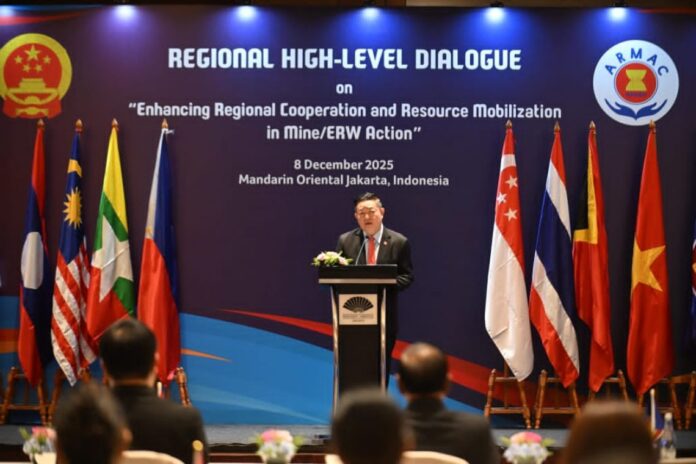 Secretary-General of ASEAN, Dr. Kao Kim Hourn, today delivered opening remarks at the 2025 High-Level Dialogue on Enhancing Regional Cooperation and Resource Mobilisation in Mine/Explosive Remnants of War Action, in Jakarta, Indonesia, an event organised by the ASEAN Regional Mine Action Center (ARMAC) with the support of the Ministry of Foreign Affairs of the People’s Republic of China. In his remarks, Dr. Kao underscored the need to enhance partnership in humanitarian mine action by exploring various opportunities towards a mine-free ASEAN.