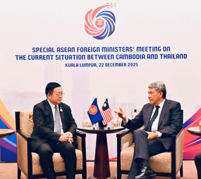 Secretary-General of ASEAN, Dr. Kao Kim Hourn, today met with The Hon. Dato’ Seri Utama Haji Mohamad bin Haji Hasan, Minister of Foreign Affairs of Malaysia and Chair of the ASEAN Foreign Ministers’ Meeting (AMM) 2025, on the sidelines of the Special ASEAN Foreign Ministers’ Meeting on the current situation between Cambodia and Thailand, in Kuala Lumpur, Malaysia.