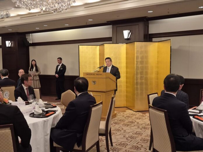 Secretary-General of ASEAN, Dr. Kao Kim Hourn, delivered remarks at a dinner reception held at the Imperial Hotel Tokyo, on 5 March 2026, bringing together Ambassadors of ASEAN Members in Tokyo, members of the Economic Research Institute for ASEAN and East Asia (ERIA) Parliamentary League, and representatives from Ministry of Economy, Trade, and Industry of Japan, Canon Institute for Global Studies (CIGS) and Japan External Trade Organization (JETRO).The reception provided an opportunity to reaffirm the importance of ASEAN–Japan partnership and continued collaboration in advancing regional economic resilience and cooperation.