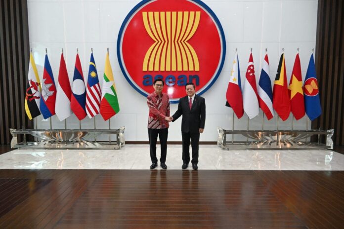 Secretary-General of ASEAN, Dr. Kao Kim Hourn, today received the Chairman of the ASEAN Bankers Association (ABA) and Chairman of the Association of Banks in Singapore, Mr. Tan Teck Long, at the ASEAN Headquarters/ASEAN Secretariat. During the meeting, both sides discussed strengthening collaboration between ASEAN and the banking sector to support regional priorities including the digital economy, cross-border payments connectivity, financial inclusion, trade finance, and sustainable finance, among others.