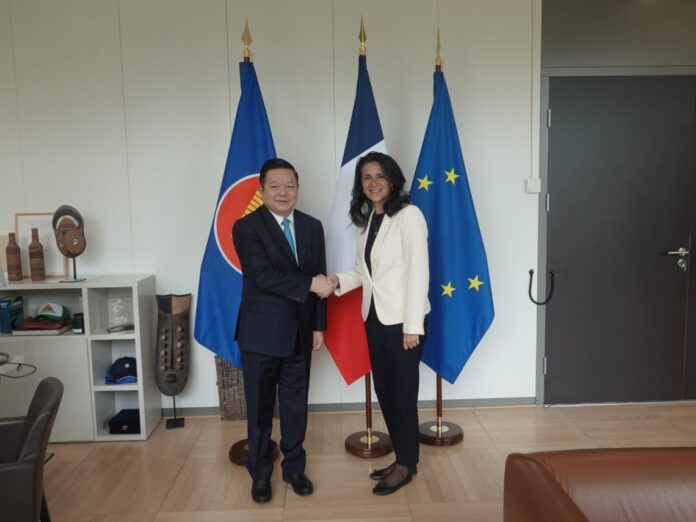 On his first day in Paris, France, Secretary-General of ASEAN Dr. Kao Kim Hourn today met with Minister of State for Development, Francophonie and International Partnerships of France Chrysoula Zacharopoulou. They exchanged views on ways and means to enhance cooperation under the ASEAN-France Development Partnership, among others. Dr. Kao also express appreciation for France’s commitment to its cooperative relationship with ASEAN, both bilaterally and through the ASEAN-European Union (EU) framework.