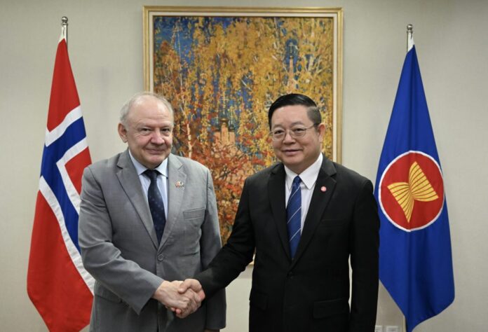 Secretary-General of ASEAN, Dr. Kao Kim Hourn, today had a meeting with the Ambassador of the Kingdom of Norway to ASEAN, H.E. Kjell Tormod Pettersen, at the ASEAN Headquarters/ASEAN Secretariat. They exchanged views on ways and means to further advance the ASEAN-Norway relations, especially as this year marks the 10th anniversary of ASEAN-Norway Sectoral Dialogue Partnership. Both sides also discussed preparations for SG Dr. Kao’s Working Visit to Norway this year.