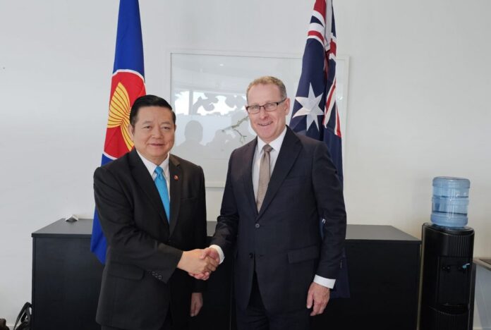 Secretary-General of ASEAN, Dr. Kao Kim Hourn, today met with Mr. Andrew McKeller, CEO of the Australian Chamber of Commerce and Industry (ACCI), during his participation in the Australia-ASEAN Business Forum 2025 in Adelaide, Australia. The meeting explored opportunities to enhance business-to-business connectivity, strengthen trade promotion, and unlock untapped trade and investment potentials between ASEAN and Australia.
