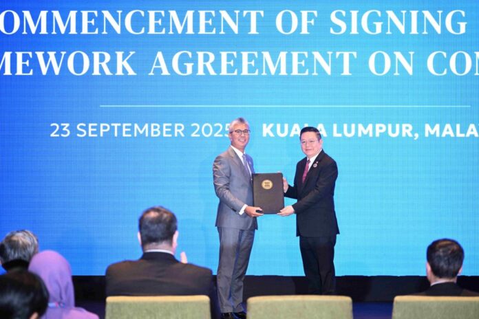Secretary-General of ASEAN, Dr. Kao Kim Hourn, today witnessed the commencement of signing of the ASEAN Framework Agreement on Competition (AFAC) on the sidelines of the 57th ASEAN Economic Ministers’ Meeting (AEM) and Related Meetings, in Kuala Lumpur, Malaysia.