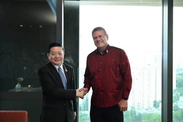 Secretary-General of ASEAN, Dr. Kao Kim Hourn, today met with H.E. Maroš Šefčovič, EU Commissioner for Trade and Economic Security, on the margins of the 57th AEM Meeting and Related Meetings, in Kuala Lumpur, Malaysia. They discussed ways to further advance the ASEAN-EU economic cooperation agenda, particularly through intensifying sectoral cooperation in sectors of mutual interest to ASEAN and the EU.