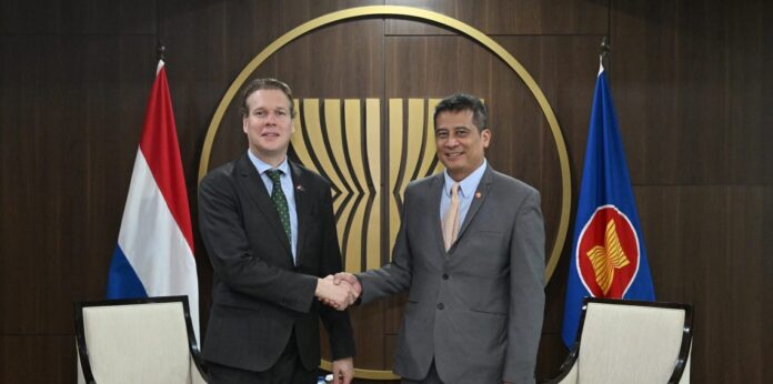 ASEAN Deputy Secretary-General for Community and Corporate Affairs, H.E. Nararya Soeprapto, received a courtesy call from Mr. Jurriaan Middelhoff, the Ambassador-at-Large for Youth, Education, and Work of the Kingdom of the Netherlands, on 11 November 2025 at the ASEAN Secretariat. The meeting highlighted shared priorities in advancing cooperation on youth empowerment and education development.