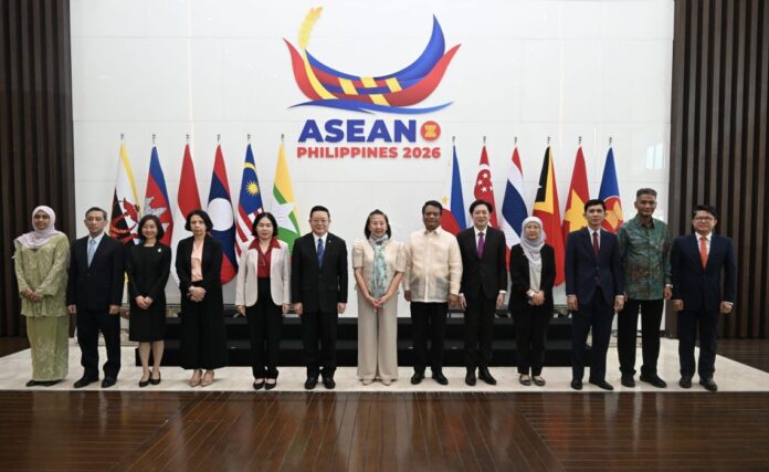 Secretary-General of ASEAN, Dr. Kao Kim Hourn, and Permanent Representative of the Philippines to ASEAN and Chair of the CPR for 2026, H.E. Ambassador Evangeline T. Ong Jimenez-Ducrocq, marked a ceremonial moment in front of the newly installed logo of the Philippines’ ASEAN Chairship for 2026, at the ASEAN Headquarters/ASEAN Secretariat. The installation of the logo symbolises the commencement of the Philippines’ ASEAN Chairship and will be prominently displayed at the lobby of the ASEAN Secretariat’s New Building throughout the year. The logo reflects the Chairship theme, Navigating Our Future, Together, embodying ASEAN’s collective strength, unity, and shared vision of a peaceful, innovative, and inclusive future. The Philippine ASEAN Chairship logo further represents the Chairship priorities of Peace and Security Anchors, Prosperity Corridors, and People Empowerment, underscoring the importance of maritime security, regional cooperation, and interconnectedness in advancing ASEAN’s Community-building efforts.