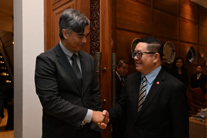 Dr. Kao Kim Hourn, Secretary-General of ASEAN, exchanged views with H.E. Sujiro Seam, Ambassador of the European Union (EU) to ASEAN on strengthening the ASEAN-EU Dialogue Partnership in the lead-up to its 50th anniversary in 2027, at the working dinner he hosted this evening.