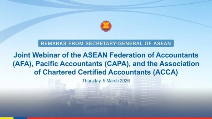 Secretary-General of ASEAN, Dr. Kao Kim Hourn, delivered his keynote remarks via video recording for the Joint Webinar of the ASEAN Federation of Accountants (AFA), Pacific Accountants (CAPA), and the Association of Chartered Certified Accountants (ACCA), with the theme “Navigating a Changed World: Recommendations for ASEAN.”  In his remarks, SG Dr. Kao called on accounting professionals in ASEAN to step up their contributions to ASEAN’s regional priorities, adapt to the fast-paced global dynamics, and advance cooperation in strategic areas such as (i) sustainable reporting, (ii) digital transformation, (iii) talent development and mobility, and (iv) intangible assets and creative value.