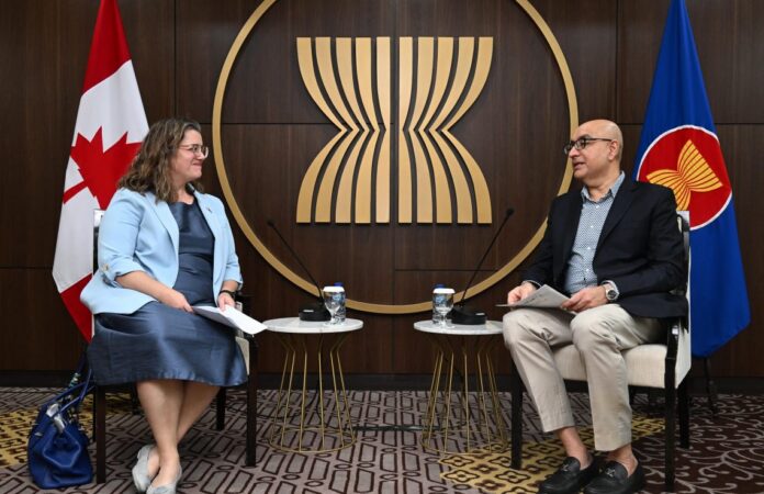 H.E. Satvinder Singh, Deputy Secretary-General of ASEAN for the AEC, met with H.E. Ambra Dickie, Ambassador of Canada to ASEAN, during the Courtesy Meeting and Launch of the CANSAFE Initiative on 20 April 2026 at ASEAN Headquarters, Jakarta. Both sides reaffirmed their commitment to strengthening ASEAN–Canada cooperation and expressed confidence that CANSAFE will enhance food safety, strengthen supply chain resilience, and build trust in regional and global agri-food systems amid growing global challenges.