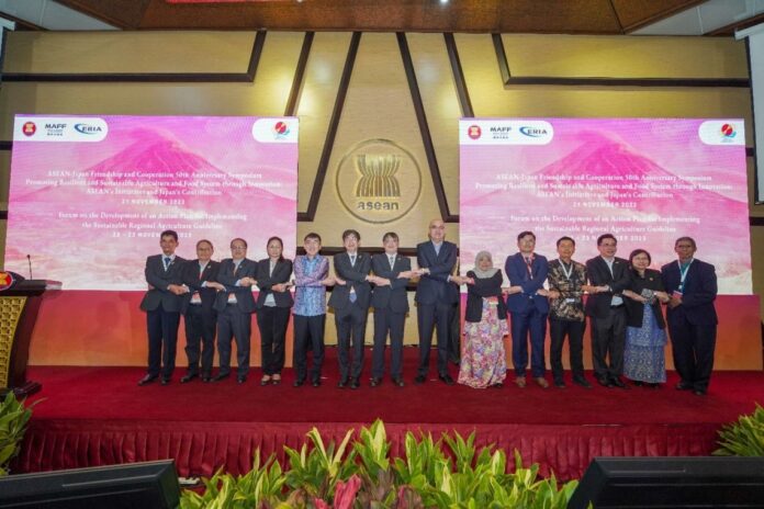 JAKARTA, 21 November 2023 – The ASEAN secretariat and Ministry of Agriculture, Forestry and Fisheries of Japan (MAFF) jointly organised a symposium on promoting resilient and sustainable agriculture and food system through innovation, with the support of Economic Research Institute for ASEAN and East Asia (ERIA).