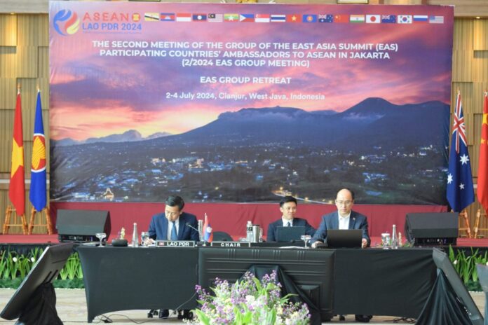 The Second Meeting of the Group of East Asia Summit (EAS) Participating Countries’ Ambassadors to ASEAN in Jakarta (EAS Group) and EAS Group Retreat took place today in Bogor, Indonesia. The Meetings were chaired by the Permanent Representative of the Lao PDR to ASEAN, H.E. Bovonethat Douangchak, and attended by Permanent Representatives/Ambassadors of EAS countries to ASEAN and representative of the ASEAN Secretariat. Timor-Leste attended as Observer. The Meeting reviewed the progress of implementation of the EAS Plan of Action 2024-2028 and exchanged views and information on regional development cooperation initiatives and security policies and initiatives. At the Retreat session, the EAS countries exchanged views on ways to support priorities of Lao PDR’s ASEAN Chairmanship under the theme of enhancing connectivity and resilience, particularly in the context of the EAS.