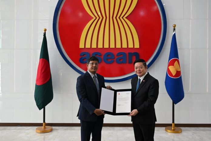 JAKARTA, 2 October 2024 – The newly-appointed Ambassador of the People’s Republic of Bangladesh to ASEAN, Md. Tarikul Islam, today presented his Letter of Credence (LOC) to Secretary-General of ASEAN, Dr. Kao Kim Hourn, at the ASEAN Headquarters/ASEAN Secretariat.