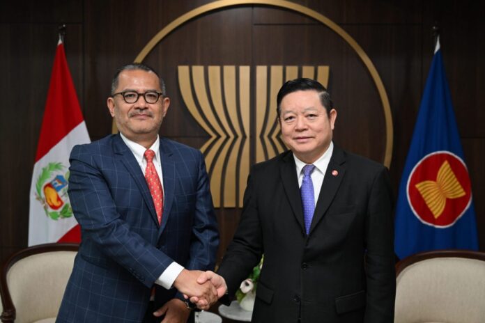 Secretary-General of ASEAN, Dr. Kao Kim Hourn, today received Ambassador of Peru to Indonesia, Timor-Leste, and ASEAN Luis Tsuboyama at the ASEAN Headquarters/ASEAN Secretariat. They discussed Dr. Kao’s participation in the upcoming Asia-Pacific Economic Cooperation (APEC) Ministerial Meeting, scheduled to be held in Lima, Peru, on 14 November 2024. Peru is the chair of APEC this year, having previously served as the APEC Chair in 2008 and 2016. The ASEAN Secretariat is one of the official observers of APEC, along with the Pacific Islands Forum Secretariat and the Pacific Economic Cooperation Council.
