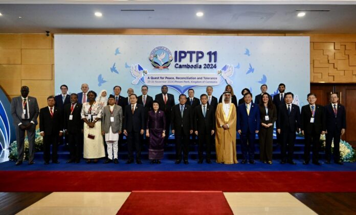 Secretary-General of ASEAN, Dr. Kao Kim Hourn, this morning along with other esteemed heads of delegations from various countries participating in the 11th Plenary Session of the International Parliament for Tolerance and Peace (IPTP), in Phnom Penh, Cambodia, paid a courtesy call on Samdech Akka Moha Sena Padei Techo Hun Sen, President of the Senate of the Kingdom of Cambodia. The courtesy call was also attended by Samdech Maha Rathsapheathika Thipadei Khuon Sudary, President of the National Assembly of the Kingdom of Cambodia and Samdech Moha Borvor Thipadei Hun Manet, Prime Minister of the Kingdom of Cambodia.