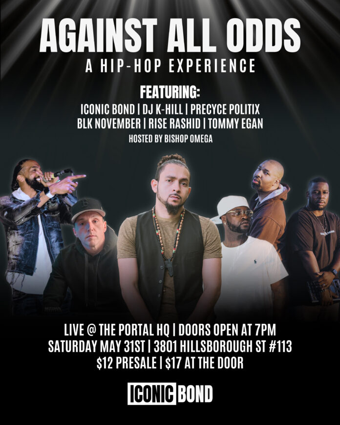 Fuquay-Varina, NC, June 02, 2025 (GLOBE NEWSWIRE) — Iconic Bond, a pioneering initiative founded by Ahmed Radwan, is set to host an extraordinary event titled “Against All Odds, A Hip-Hop Experience.” This event promises to be a remarkable fusion of music and community spirit, featuring performances by renowned artists DJ K-Hill, Precyce Politic, Blk November, Rise Rashid, and Tommy Egan. The event will be hosted by the charismatic Bishop Omega, ensuring an unforgettable evening for all attendees.