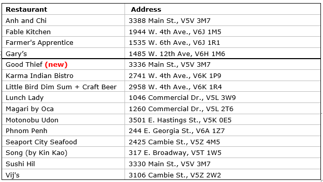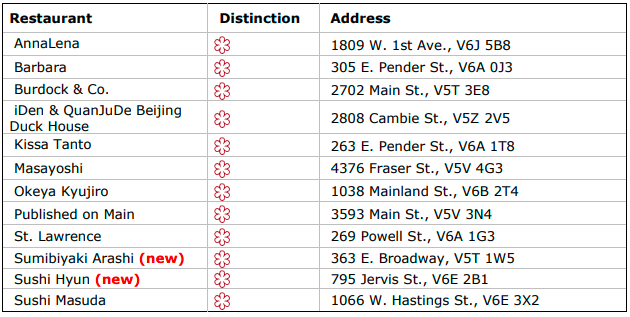 Sumibiyaki Arashi and Sushi Hyun both joined the exclusive list of MICHELIN-Starred restaurants in North America, as both restaurants were awarded on stage at the Commodore Ballroom. In addition, the city’s Guide boasts a new Bib Gourmand, Good Thief, bringing the selections total to 15. The full selection, including recommended eateries, totals 76 restaurants with 22 cuisine types represented.