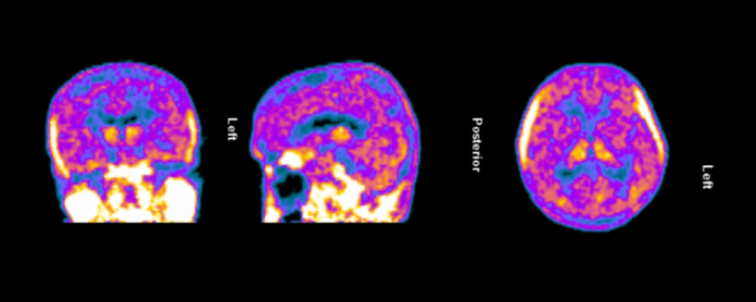 Figure 1. TSPO-PET scan of an Alzheimer’s patient treated with lecanemab demonstrating persistent and widespread microglial activation throughout the brain.