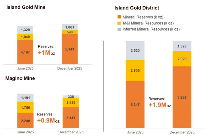 “The evolution and growth of Island Gold continues with another substantial increase in Mineral Reserves supporting another high-return expansion of the operation. The IGD Expansion is starting to unlock the true potential of the Island Gold District with the increase in mining rates expected to drive production to more than 530,000 ounces per year at among the lowest costs in the industry. The IGD Expansion has driven the value of the operation to over $12 billion at gold prices of $4,500 per ounce, up from a combined acquisition cost for Island Gold and Magino of $1.4 billion. Given our significant ongoing exploration success within the main Island Gold structure and spectacular high-grade results we are seeing within the nearby Cline-Pick targets, we are confident there is further growth and upside to come,” said John A. McCluskey, President and Chief Executive Officer.