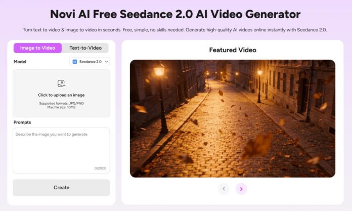 NEW YORK, NY, Feb. 25, 2026 (GLOBE NEWSWIRE) — Novi AI, an AI video generator platform, today announced the integration of Seedance 2.0, a widely recognized AI video model known for its multi-modal generation capabilities and improved visual consistency. The update is designed to make advanced AI video creation more accessible while simplifying the overall content creation process.