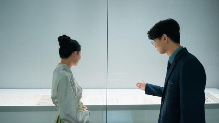 The hall visited by the two people centers on the original The Remaining Mountain and an immersive theater experience. The exhibition is divided into two sections: Dwelling in the Fuchun Mountains and Taoist-Inspired Painting. It also features digital experiences for visitors, including Imagination of Complete View, Treasures of Painting and Calligraphy, Collected Works of Huang Gongwang, and Co-Creating Landscapes. By intertwining the authentic work, interactive interfaces, and immersive visuals, the exhibition made Wang feel as if she were standing by the Fuchun River, sensing the gentle breeze and the soft murmur of the water.