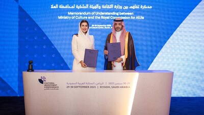 RIYADH, Saudi Arabia, Sept. 30, 2025 /PRNewswire/ — The Ministry of Culture and the Royal Commission for AlUla have signed a Memorandum of Understanding in Riyadh during the Cultural Investment Conference to strengthen cooperation in culture, heritage and development. The agreement was signed by Vice Minister of Culture Hamed Fayez and RCU Chief Executive Officer Abeer AlAkel, marking a key step towards positioning AlUla as a global cultural destination.